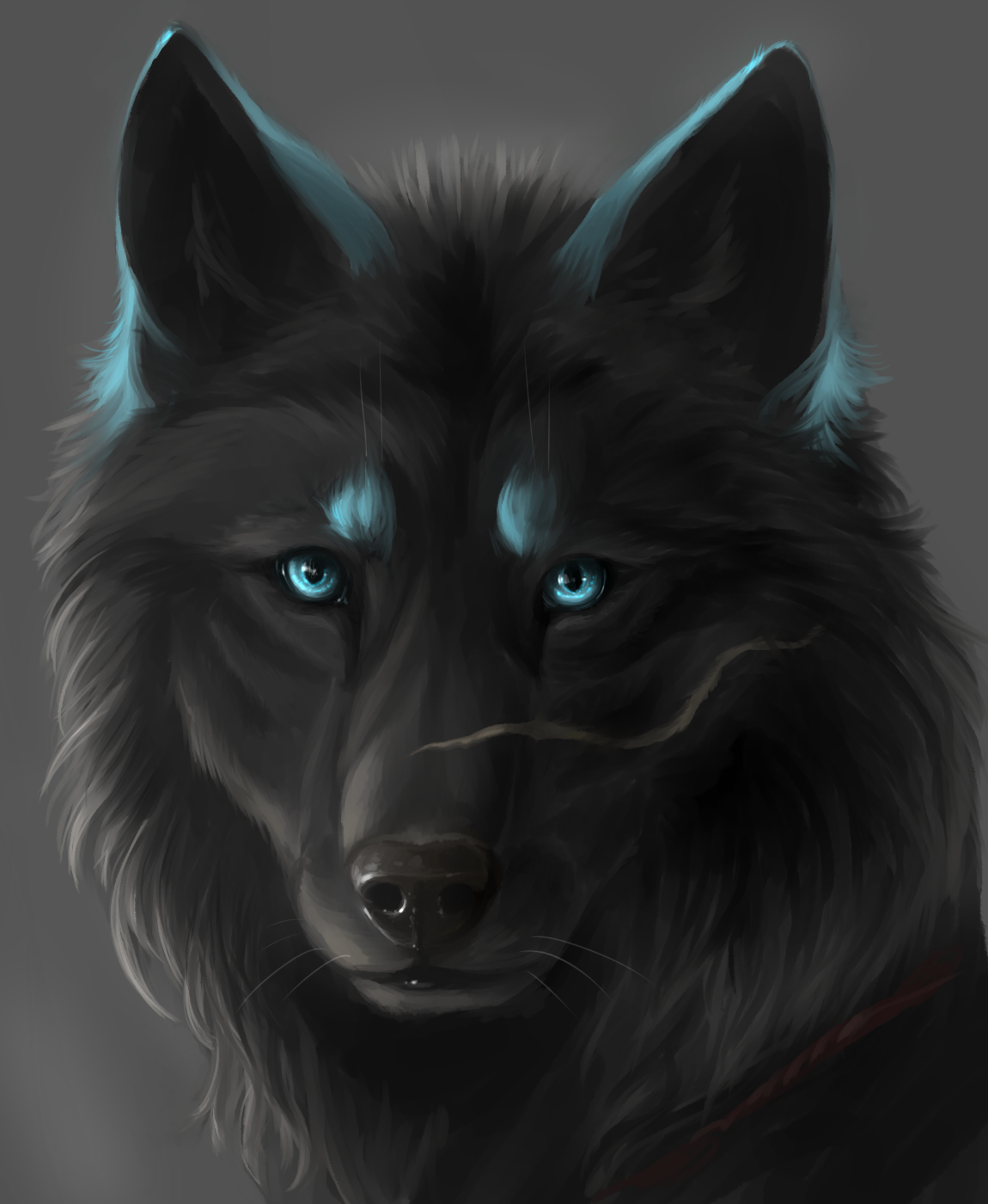 Cechy fizyczne: Vi jest zgrabną i drobną waderą, aczkolwiek ma postawną figurę i bojowe nastawienie. Jej uszy są szpiczaste i stojące, pysk smukły, ale nie długi. Vi ma masywne przednie łapy, kark oraz klatkę piersiową po swoim niezwykle masywnym i muskularnym ojcu. Turkusowo białe zarysy brwi odziedziczyła po matce, niezwykle chudej i eleganckiej waderze. Vi jest dość puchatym osobnikiem, opatula ją mięciutkie i gęste futro, które idealnie chroni ją w zimne i chłodne dni w czasie zimy bądź jesienią, a na lato i wiosnę gubi ona zbędne futro i sierść wydając się o wiele drobniejszą niż jest. Oczy Vi są niezwykle przeszywające, pełne błękitu, turkusu i aksamitnej bieli z nutą czerni. Jej pazury są długie i ostre, również w czarnym, hebanowym odcieniu. Vi całościowo jest czarnym wilkiem, jednak kolor jej umaszczenia jest w chłodnym odcieniu co idealnie i niezwykle pięknie komponuje się z turkusowymi i białymi elementami jej umaszczenia. Mimo pięknego i niespotykanego wyglądu jak na wilka żyjącego długi czas u ludzi Vi pomimo swojego umaszczenia wygląda jednocześnie dość agresywnie, przez co często odstrasza swoich napastników i wrogów.